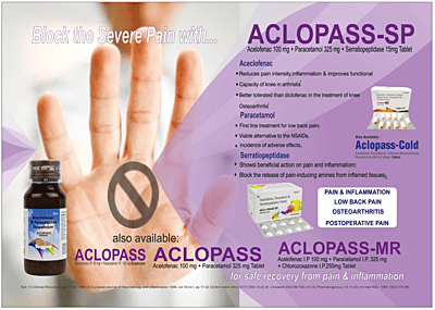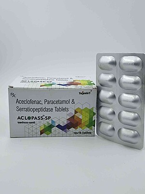 Treat viral fever, headache, and body aches with ACLOPASS Tablet. A safe and effective combination of Aceclofenac (100mg) & Paracetamol (325mg) for daily pain relief.