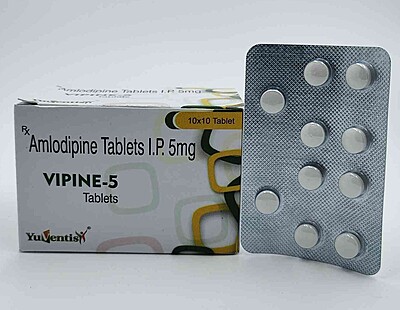 Prevent strokes and kidney risks with VIPINE 5. A proven Amlodipine 5mg Calcium Channel Blocker that ensures smooth blood flow and healthy BP levels.
